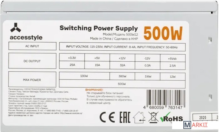 Markit » Блоки питания » Блок питания AccesStyle 500W12