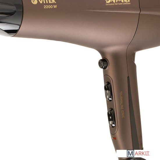 Не только высушить волосы после мытья, но и уложить их в прическу поможет фен VITEK VT-1320 с тремя температурными режимами и двумя скоростями воздушного потока. Прибор оснащен защитой от перегрева, что значительно продлевает срок службы устройства. Максимальная мощность устройства — 2200 Вт. Решетка фена имеет инновационное покрытие Tourmaline Ionic, образующее при нагревании отрицательные ионы, которые запечатывают чешуйки волос и снимают статическое электричество. В комплект входят две насадки: концентратор и диффузор. Первый способствует усилению воздушного потока и воздействию на определенные пряди, что помогает создавать задуманную вами прическу. Диффузор обеспечивает более бережную сушку волос и создание прикорневого объема. Хотите зафиксировать прическу? Включите функцию подачи холодного воздуха! Пользоваться феном очень комфортно: благодаря покрытию Soft Touch прибор не скользит в руках. Удобству способствует и вращающийся шнур длиной 1,8 м. Фен имеет съемный фильтр, который легко промывается водой. По окончании использования прибор можно подвесить за удобную петельку. Купите фен VITEK VT-1320, который позволит вам заботиться о волосах и всегда выглядеть превосходно!