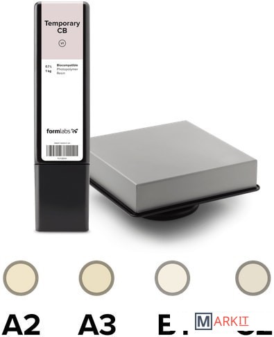 Temporary CB Resin - это полимер цвета зубов для 3D-печати временных реставраций коронок и мостовидных протезов, вкладок, накладок и виниров. Этот материал, предназначенный для изготовления мостовидных протезов с количеством единиц до семи и доступный в четырех цветах VITA, обеспечивает превосходную краевую адаптацию, прочность и эстетику. Используйте традиционный временный цемент для фиксации реставраций, изготовленных с использованием Temporary CB Resin. Реставрации, выполненные с помощью Temporary CB Resin, могут оставаться во рту до 12 месяцев. Реставрации, созданные в цифровом виде, позволяют стоматологу, техническим специалистам и пациентам быстро взаимодействовать друг с другом.Платформа из нержавеющей стали требуется при печати с использованием Temporary CB Resin для оптимального внешнего вида и производительности.