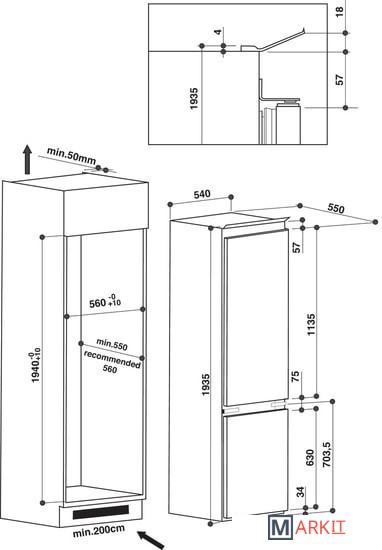 встраиваемый холодильник, высокий холодильник |