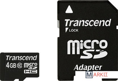 Markit » Карты памяти » Карта памяти Transcend microSDHC (Class 10) 4GB + адаптер (TS4GUSDHC10)