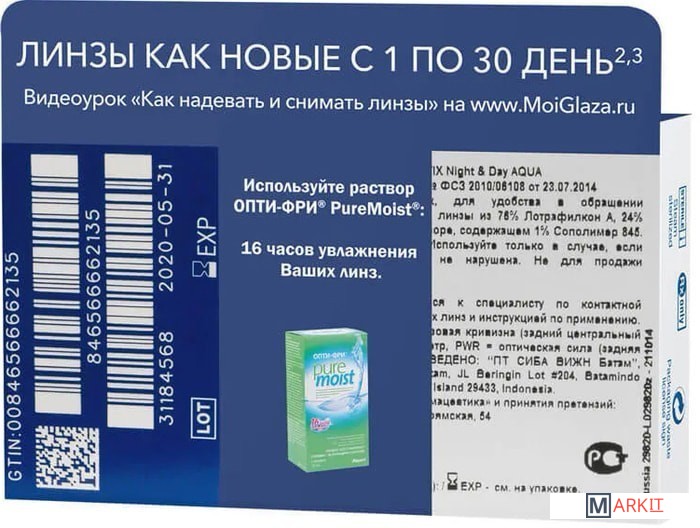 Markit » Контактные линзы » Контактные линзы Alcon Air Optix Night&Day Aqua +2.5 дптр 8.4 мм