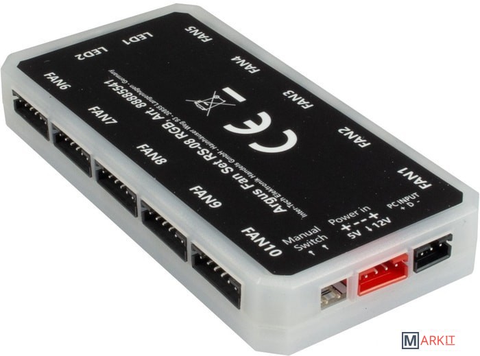 Возможность управления эффектами с помощью пульта дистанционного управления или музыки / звуков.В комплекте:3x вентилятора Argus RS-08 RGB LED;контроллер на 10 вентиляторов;пульт ДУ;крепеж;документация.