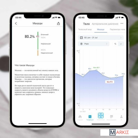 Функциональные особенности | расчет доли воды, расчет доли жировой ткани, расчет доли мышечной ткани, расчет доли костной ткани, расчет ИМТ (BMI), расчет ПБМ (BMR), расчет обмена веществ с учетом физической активности (AMR), расчет уровня белка, расчет биологического возраста |