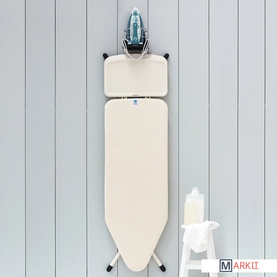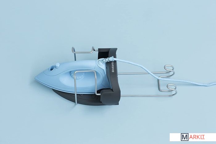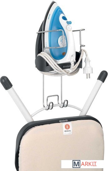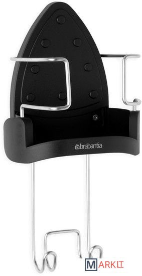 Подходит для всех распространенных моделей (паровых) утюгов.Можно ставить неостывший утюг – подставка из термостойкого металла.Удобное хранение гладильной доски – прочный стальной крюк для подвешивания.Фиксация провода – удобный держатель.Размеры: 38.1x16x19.5 см.Вес: 500 г.