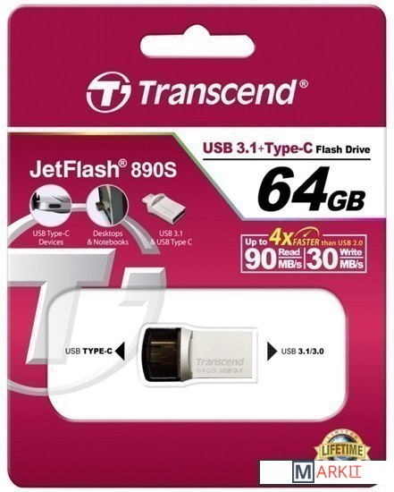 Markit » Флешки USB » USB Flash Transcend JetFlash 890S USB3.1 + Type-C 64GB [TS64GJF890S]